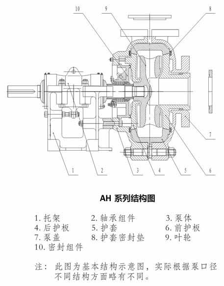 AH型臥式渣漿泵結(jié)構(gòu)圖如下: