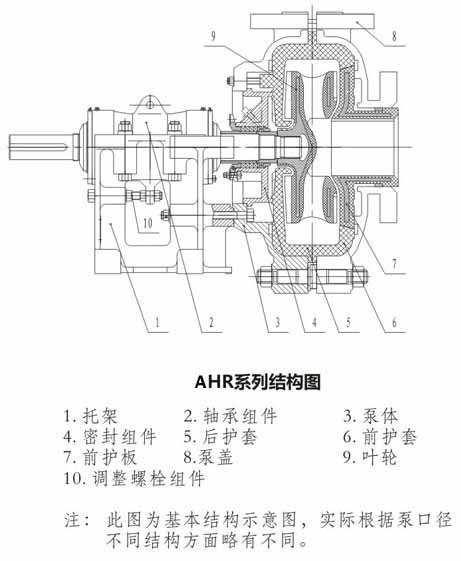 AHR型渣漿泵的結(jié)構(gòu)圖如下: